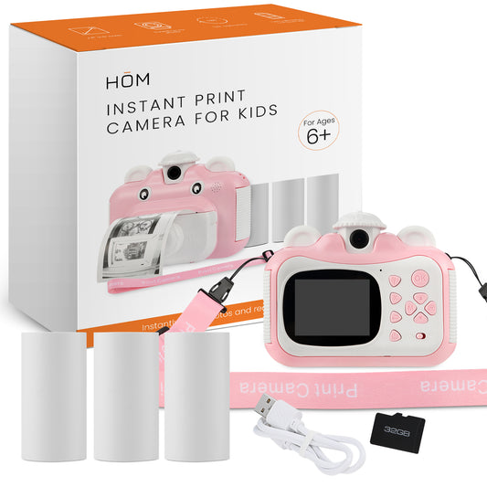 HOM Kids Digital Printing Camera - 1080p Video, 2.4" Display, 32GB Micro-SD Card - Creative Camera & Printer for Kids (Pink, 1 Pack)