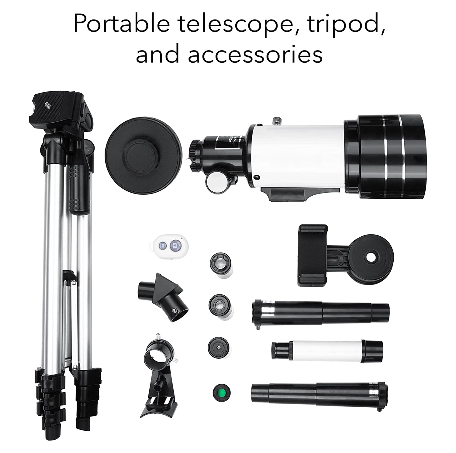 HOM Astronomical Telescope - 360° Rotational Telescope with Multiple Eyepieces - Up to 150X magnification (Black/White)